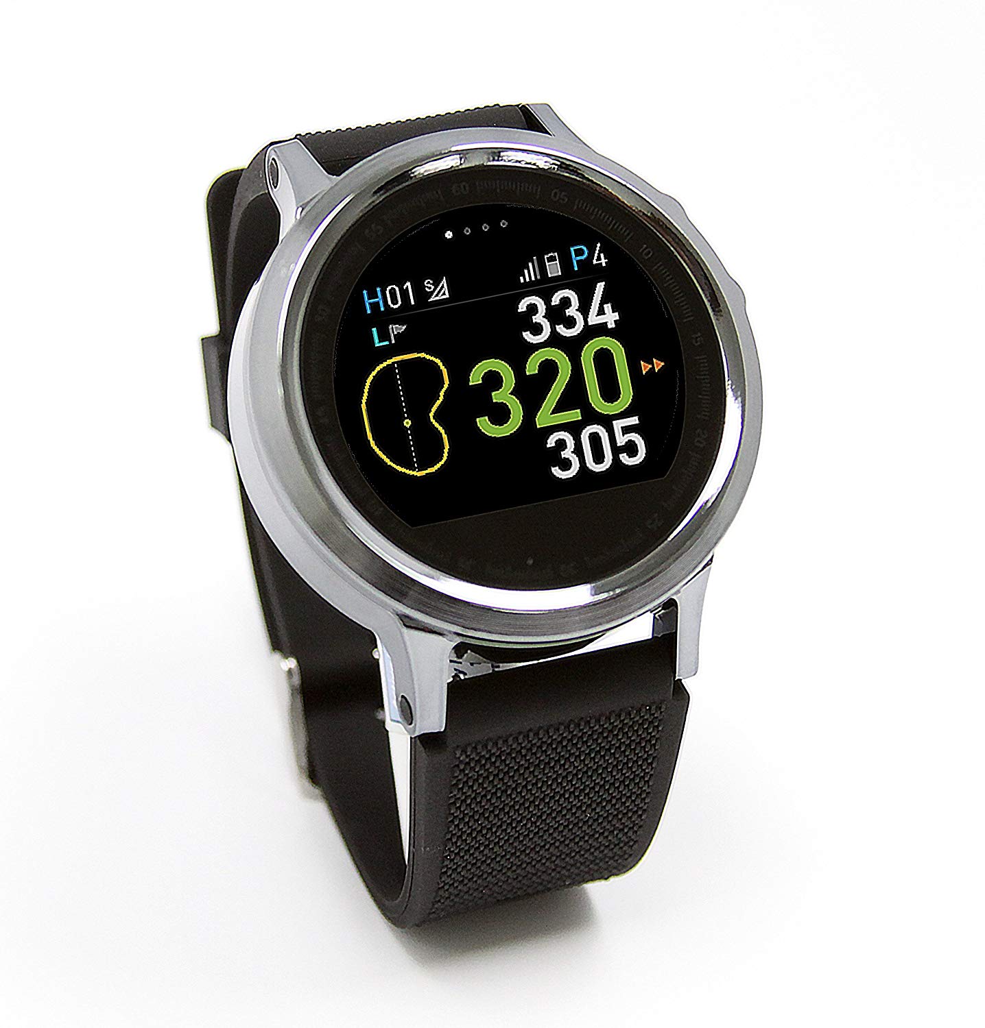 The GolfBuddy WTX + Smart Golf GPS watch has features typical of a golfer's smartwatch, such as the following:
